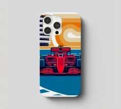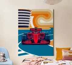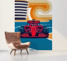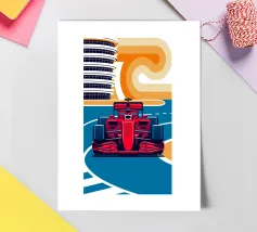 Scena di auto da corsa di Formula in Bahrain - Design grafico retrò.