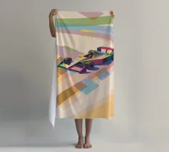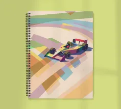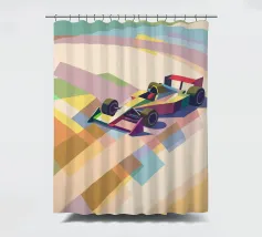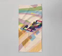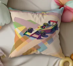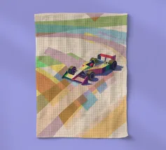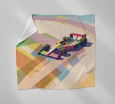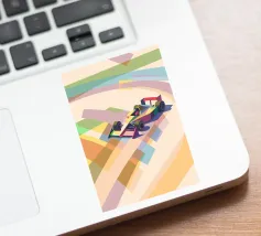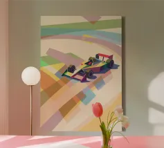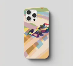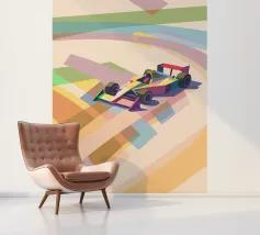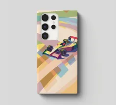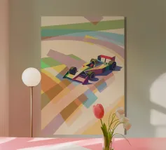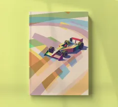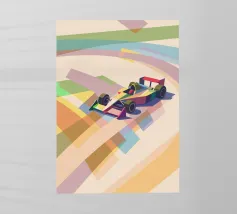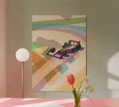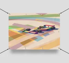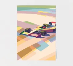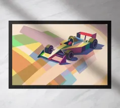 Illustrazione di un'auto di Formula 1 con uno stile geometrico astratto.
