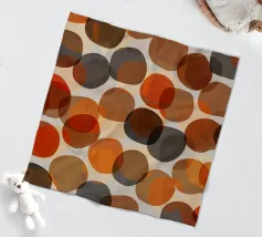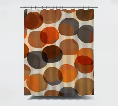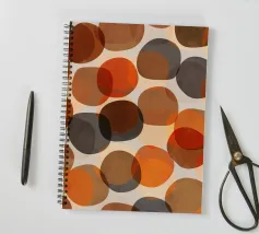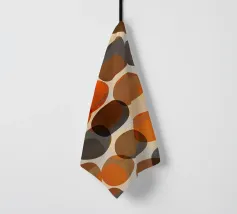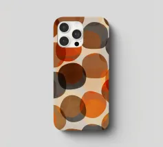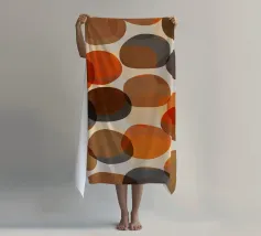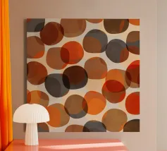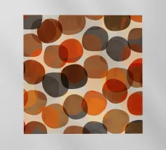 Forme rotonde, irregolari, vagamente di ciottoli e zucche, sovrapposte, nei colori autunnali di rosso, arancio, marrone e grigio. Moderno ma con un'atmosfera da metà secolo.