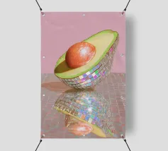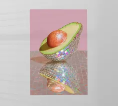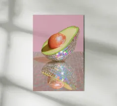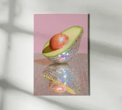 Questo vivace dipinto pop art combina gli avocado con un tema da discoteca, luci scintillanti e una copertura da discoteca in argento e accenti colorati. Gli elementi specchianti e a mosaico ricordano lo stile retrò e creano un'atmosfera allegra. Una grafica che unisce musica e piacere e invita a festeggiare.