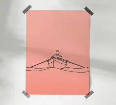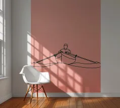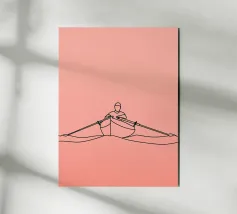 Una line art minimalista di un canoista che pagaia nell'acqua, che cattura la tranquillità, l'avventura e il movimento. Perfetto per gli appassionati di outdoor e per gli arredi ispirati alla natura.