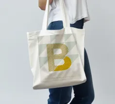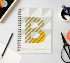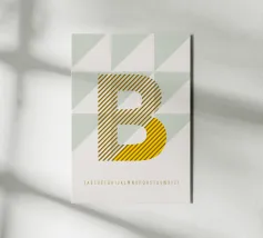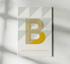 B-TYPEFACE in un design senza tempo - poster tipografico con colori vivaci e un gioco di forme sullo sfondo.