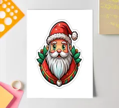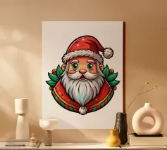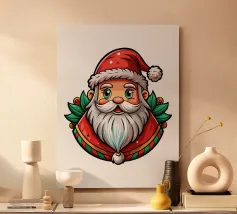 Celebrate le festività natalizie con questa deliziosa illustrazione di Babbo Natale, con un gioioso Babbo Natale dagli occhi verdi, una soffice barba bianca e il classico cappello rosso ornato da foglie e bacche di agrifoglio. Questo affascinante Babbo Natale in stile cartone animato è l'aggiunta perfetta a qualsiasi decorazione natalizia, portando calore e allegria a biglietti d'auguri, adesivi, abbigliamento e decorazioni per la casa. Ideale per gli appassionati di disegni natalizi stravaganti, questa illustrazione cattura l'essenza della magia e della nostalgia delle feste. Sia che stiate decorando per la stagione o che siate alla ricerca di un regalo unico, questo allegro disegno di Babbo Natale i