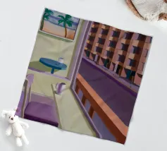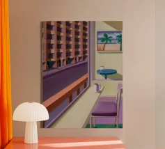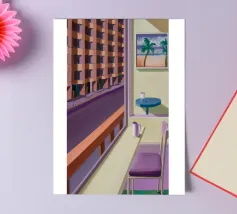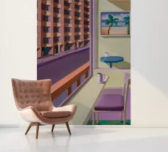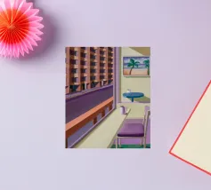Un lungo balcone che si affaccia sulle palme e sul mare irradia linee pulite e un rifugio moderno, con una punta di tranquilla nostalgia.