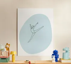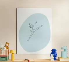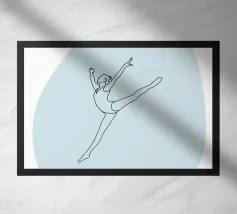 Line art minimalista di una ballerina di danza classica in una posa elegante, che cattura la grazia, la fluidità e il movimento. Perfetto per gli amanti della danza e per le decorazioni ispirate alla performance art.