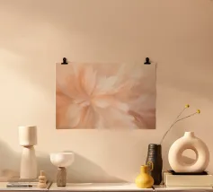 Accattivante ode all'eleganza minimalista. Questo disegno presenta un primo piano di una grande forma di fiore, magistralmente suggerita da pennellate delicate e sciolte. Delicati colori pastello danno vita a questa opera d'arte eterea, creando una poesia visiva sottile e suggestiva al tempo stesso. Questo disegno è una testimonianza della bellezza che si trova nella semplicità. Ogni tratto accenna alla grazia di un fiore in fiore, invitando gli spettatori in un regno di tranquillità e fascino sobrio.