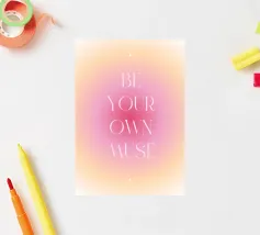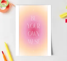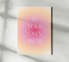 Abbracciate l'autoispirazione con il nostro poster Aura Gradient "Be Your Own Muse". Questa opera d'arte che dà forza alla tua creatività è caratterizzata da un'elegante frase in caratteri tipografici bianchi e da un'ipnotica sfumatura di rosa tenue che si irradia verso l'esterno fino a raggiungere i toni caldi dell'arancione e della luce. La sfocatura eterea crea un effetto aura calmante ed edificante, perfetto per camere da letto, studi creativi o qualsiasi spazio che desideri un tocco di amor proprio e tranquillità estetica. La nostra arte digitale è meticolosamente realizzata con una risoluzione di 7000x5000 pixel a 300 dpi, per garantire una chiarezza eccezionale e una finitura di alta qualità per i vostri post premium.