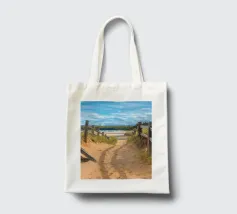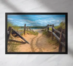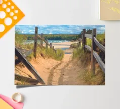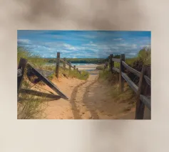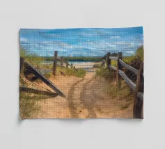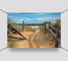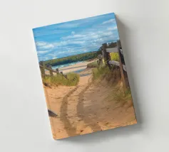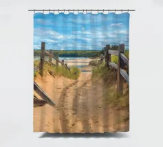 Un sentiero sabbioso che conduce a una spiaggia della baia di Au Train, sul lago Superiore, nella Penisola Superiore del Michigan.