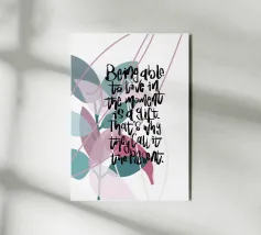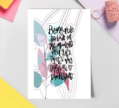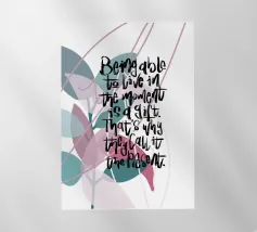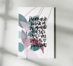 "Poter vivere il momento è un dono. Ecco perché lo chiamano "presente"". Lettering e illustrazione Fine Art fatti a mano per ricordare quanto sia importante ricordarsi sempre di vivere di più nel momento, nel "qui e ora". La vita accade proprio ora. Ed è un regalo!