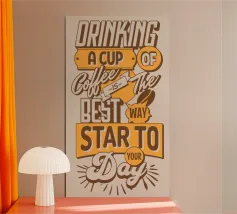 La frase "Bere una tazza di caffè è il modo migliore per iniziare la giornata" è scritta con un'elegante grafia marrone scuro su un armonioso sfondo color crema. Questo pezzo accattivante combina perfettamente armonia e raffinatezza, rendendolo un'aggiunta ideale alla caffetteria, alla cucina, all'ufficio o al soggiorno. Il contrasto del testo marrone contro il crema crea una combinazione di colori armonica e armoniosa che si adatta a qualsiasi stile di arredamento. Il regalo perfetto per gli amanti del caffè o per chiunque apprezzi un po' più di raffinatezza e un to