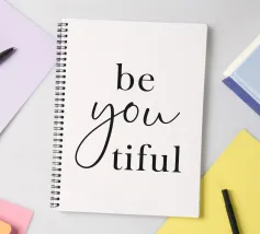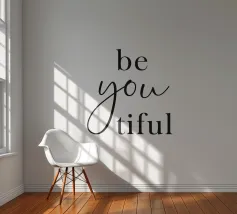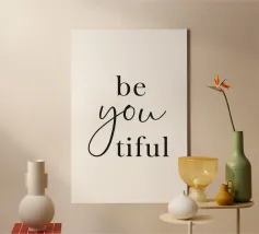 Celebrate la vostra vera bellezza con la stampa "Beyoutiful". Caratterizzato da un design minimalista in bianco e nero, questo pezzo tipografico emana ispirazione e fiducia. Disponibile in tazze, cuscini, borse, quaderni e adesivi, è perfetta per aggiungere un tocco di positività alla vostra vita quotidiana.