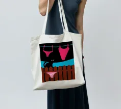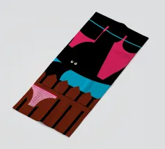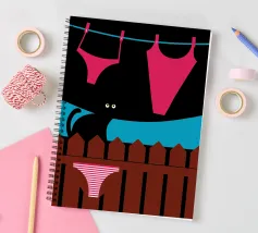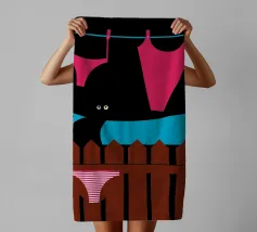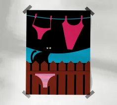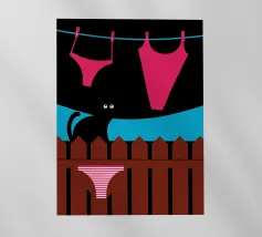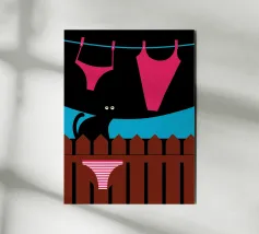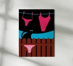 L'illustrazione "Cats and Underwear" presenta un design minimalista che combina immagini di gatti con vari modelli di biancheria intima.