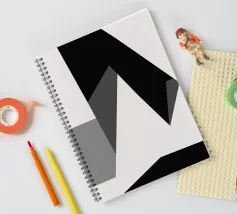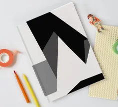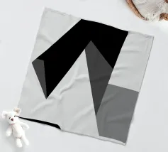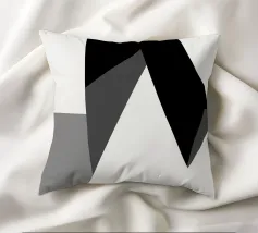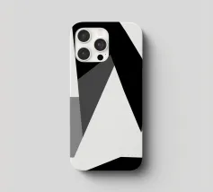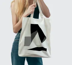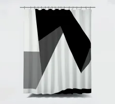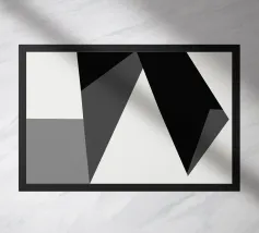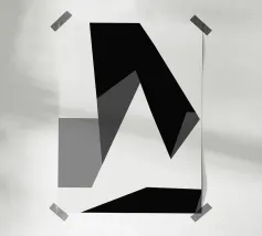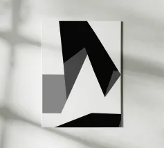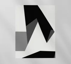 Una serie di forme geometriche nere e grigie si sovrappongono su uno sfondo bianco, creando una composizione astratta. L'uso delle ombre aggiunge profondità, dando l'illusione di una struttura tridimensionale.