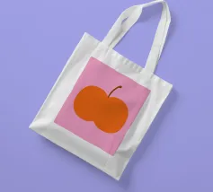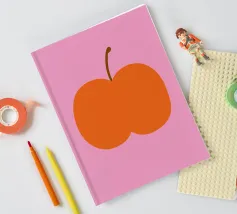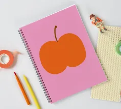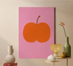 Illustrazione di una grande mela rossa su sfondo rosa.