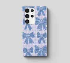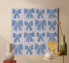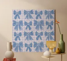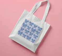 Motivo di fiocchi blu con sfondo in percalle