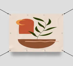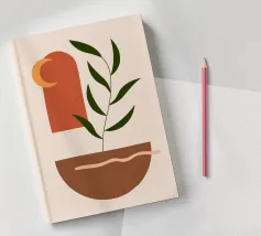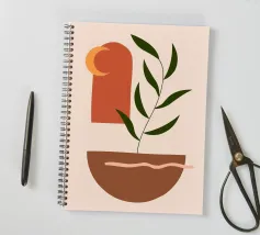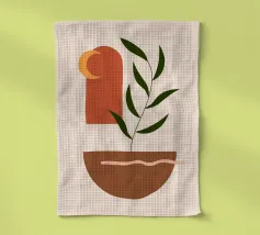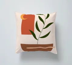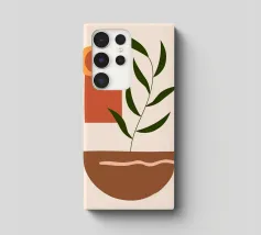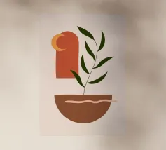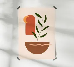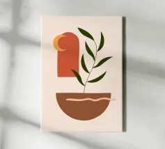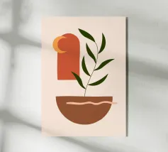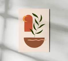 impianto luna foglie vaso ciotola mezzaluna ramo minimalista botanico natura astratto curva arco verde geometrico elementi naturali tono della terra fogliame forma organica forma semplice