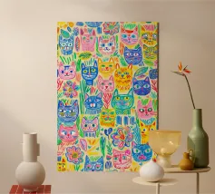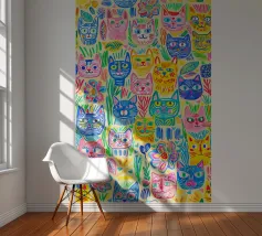 Schizzi di gatti stravaganti con linee spesse, blocchi di colore vivaci ed espressioni simpatiche. Questo disegno di gatto è caratterizzato da un'espressione cruda e da una sfida giocosa, che unisce la spontaneità della street-art a un senso di chiarezza grafica.