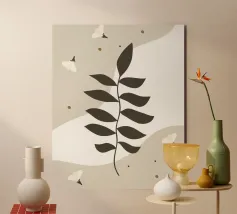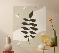 Una delicata danza della natura: quest'opera d'arte minimalista presenta un grazioso ramo frondoso circondato da morbidi elementi floreali, in una fluida tonalità neutra. Perfetto per gli amanti dell'arredamento botanico moderno, questo pezzo porta calma, equilibrio e fascino naturale a qualsiasi spazio.