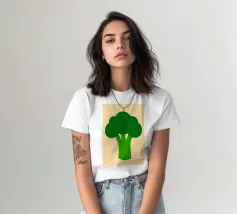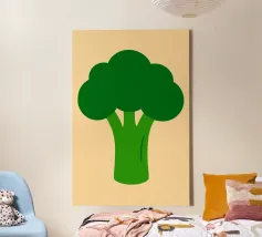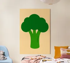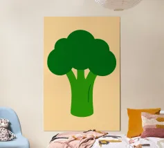 Un elegante poster sui broccoli in stile pop art minimalista: forme chiare, verde vivace su sfondo beige - perfetto per cucine, sale da pranzo o come spiritoso richiamo visivo nelle famiglie vegetariane. Questo poster unisce un messaggio salutare a un design moderno e ammiccante. Ideale per chiunque voglia mostrare il proprio amore per le verdure - semplice, fresco, iconico.
