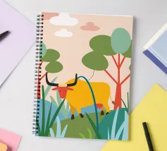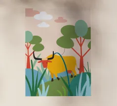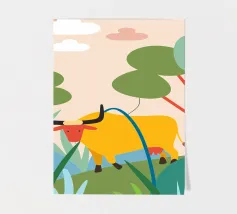 Questa affascinante illustrazione presenta un pacifico bufalo in mezzo a un vivace giardino fiorito.