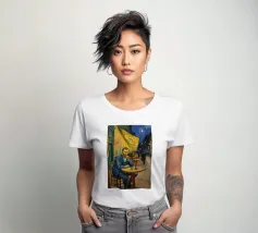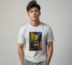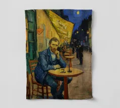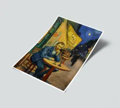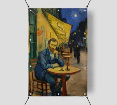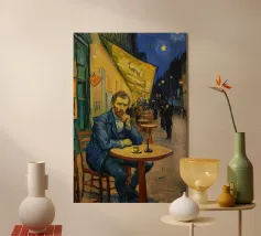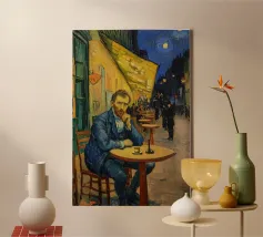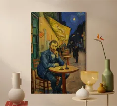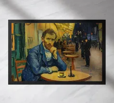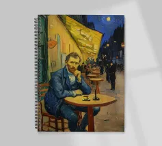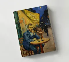 Nel famoso dipinto di Vincent van Gogh "Terrazza del caffè di sera", l'artista siede pensieroso in un vivace caffè notturno, circondato da un cielo stellato scintillante.