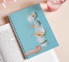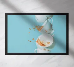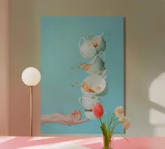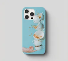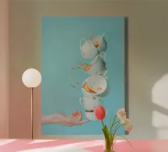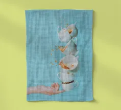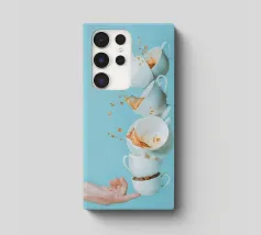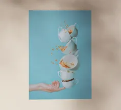tazze da tè caffè schizzo caduta gravità mano equilibrio liquido ceramica sfondo blu movimento versare piattino bevanda volare caffeina maldestro cattura levitazione tazza-impilabile