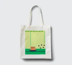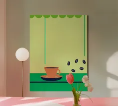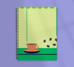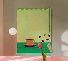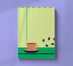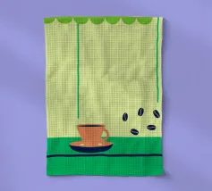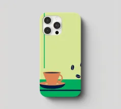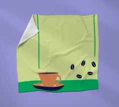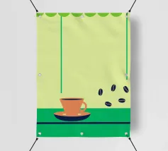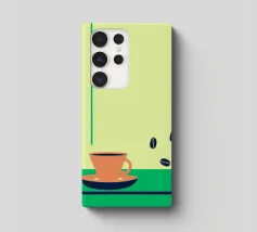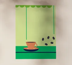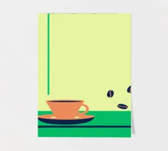 Godetevi l'aroma fragrante e il gusto ricco del caffè. Design con chicchi di caffè e una tazza di caffè da leccarsi i baffi.