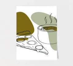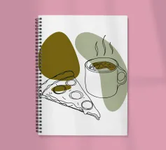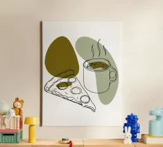 L'abbinamento perfetto per iniziare la giornata o per godersi un momento di relax! Questo disegno raffigura una fragrante tazza di caffè e un delizioso trancio di pizza, una combinazione che molti amano.