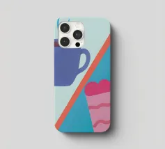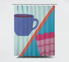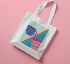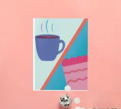 Un'illustrazione semplice ma accattivante di una tazza di caffè caldo e di una deliziosa fetta di torta.