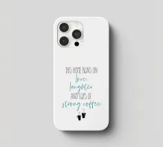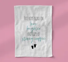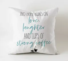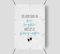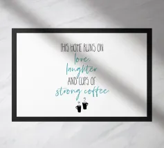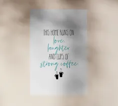 Questa casa funziona con l'amore, le risate e le tazze di caffè forte. Questa casa funziona con l'amore, le risate e le tazze di caffè forte. Design tipografico moderno.