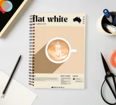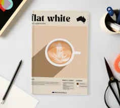 tazza caffè latte art bevanda bevanda tazza espresso latte cotto a vapore infografica testo menu caffè Australia etichetta tipografia contorno paese colore marrone fumoso sfondo beige sezione "Informazioni dove bere elenco ingredienti