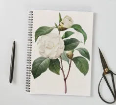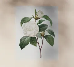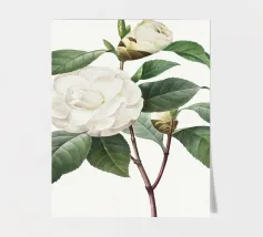 "White Camellia" da Choix des plus belles fleurs (1827) di Pierre-Joseph Redouté è un'illustrazione botanica vintage mozzafiato che cattura l'eleganza della Camellia japonica. I petali bianchi, morbidi e stratificati, contrastano splendidamente con il fogliame verde intenso, dipinto con la precisione e la delicata tecnica dell'acquerello tipica di Redouté. Questa opera d'arte senza tempo è ideale per gli amanti dell'arte botanica, dell'arredamento vintage e dei disegni tessili floreali, ed è un'aggiunta perfetta agli interni ispirati alla natura, alle stampe d'arte e alle collezioni botaniche storiche.