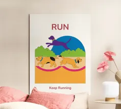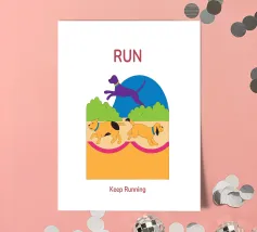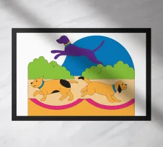 Un cane che corre vigorosamente, perfetto per magliette, tazze, adesivi e altri prodotti. Questo disegno unico è perfetto per gli amanti dei cani, per i proprietari di animali e per tutti coloro che amano i disegni dinamici ed energici.