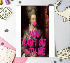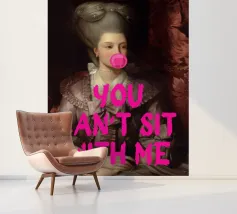 Fate una dichiarazione giocosamente esclusiva con "You Can't Sit With Me". Questa accattivante stampa pop art fonde magistralmente la ritrattistica classica, con una figura regale dall'elaborata acconciatura, con un tocco contemporaneo e umoristico. Una vivace bolla di gomma da masticare rosa è aggiunta giocosamente alle sue labbra, mentre il testo in grassetto rosa caldo "YOU CAN'T SIT WITH ME" sovrasta l'immagine, ispirandosi alla cultura iconica dei meme. È una miscela perfetta di eleganza senza tempo e arguzia moderna, ideale per aggiungere personalità e un tocco di spensierata esclusività a qualsiasi interno moderno. Realizzato con un eccezionale formato 7000x5000 p