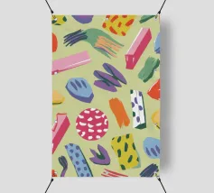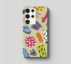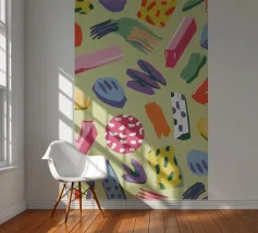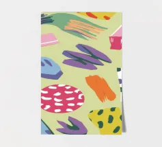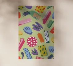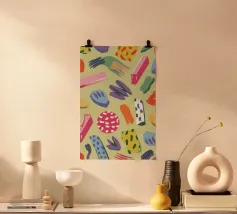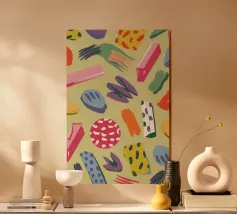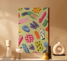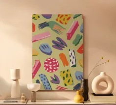 Un disegno astratto energico e caotico fatto di pennellate vibranti, scarabocchi e forme giocose. L'opera d'arte cattura la gioia spontanea e disordinata del processo creativo.