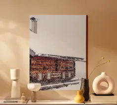 Questo incantevole motivo mostra una rustica baita di montagna ricoperta di neve fresca, mentre i fiocchi di neve cadono dolcemente. La calda texture del legno e l'ambiente tranquillo rendono questo disegno una perfetta rappresentazione dell'armonia invernale. Ideale per opere d'arte da parete, tazze, custodie per cellulari o cuscini, questo motivo porta la tranquillità delle giornate invernali innevate e la magia delle montagne in ogni casa. Perfetto per gli amanti del romanticismo alpino e dei motivi tradizionali della natura.