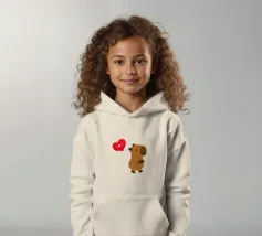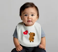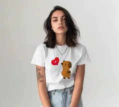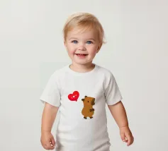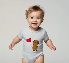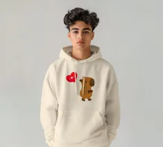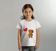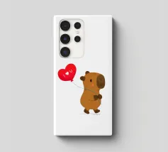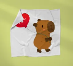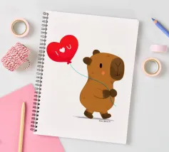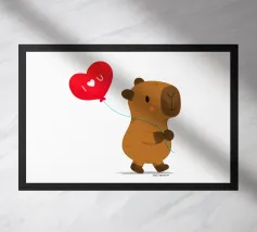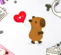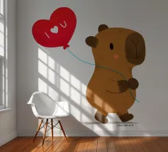 Simpatico disegno di un capibara con un palloncino a forma di cuore, dove è scritto "Ti amo".