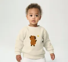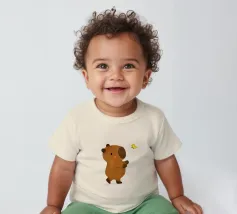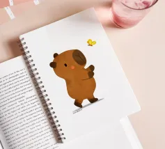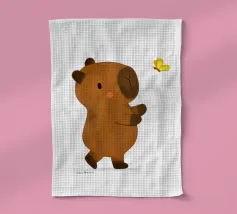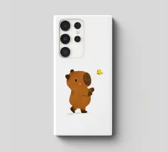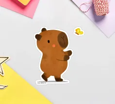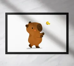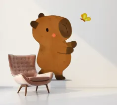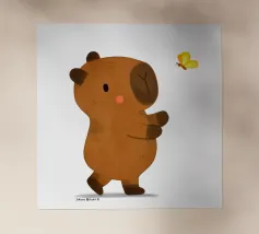 Simpatico disegno di capibara che guarda una dolce farfalla gialla
