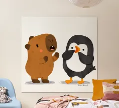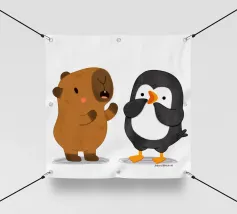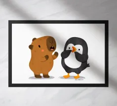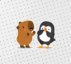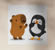 Disegno molto carino e divertente di capibara e pinguino che parlano. Di cosa staranno parlando?