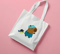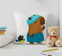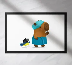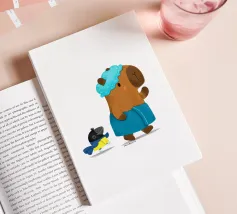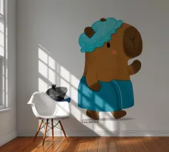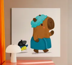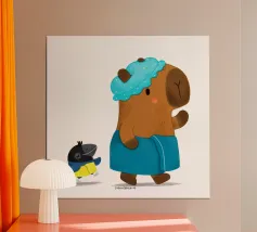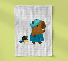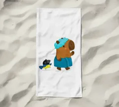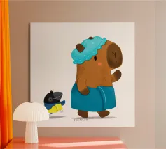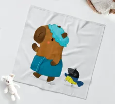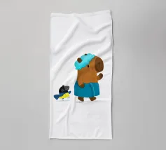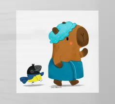 Simpatico disegno di Capibara e Uccello che indossano gli asciugamani perché è l'ora del bagno!