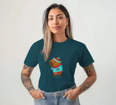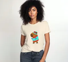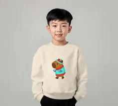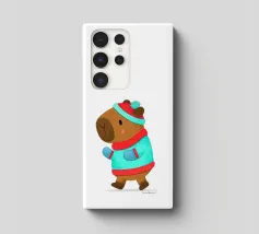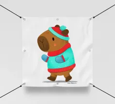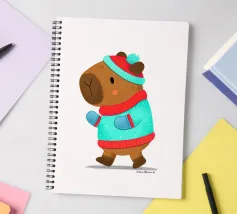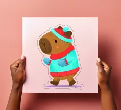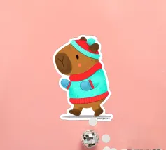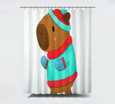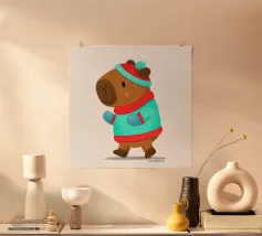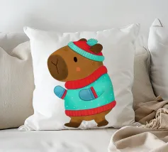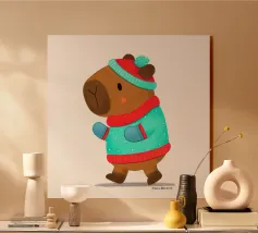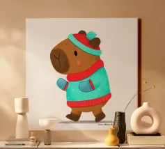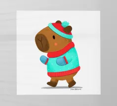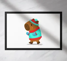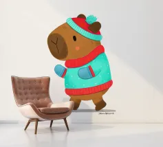 Simpatico disegno di capibara che indossa abiti invernali in stile moda per rimanere accogliente e alla moda.