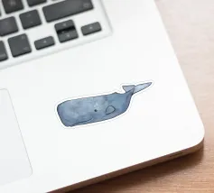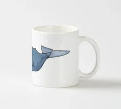 Illustrazione di un capodoglio disegnata a mano con inchiostro e acquerelli, con la possibilità di apportare modifiche. Per alcuni prodotti è possibile modificare il colore dello sfondo e/o aggiungere del testo.