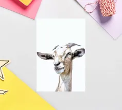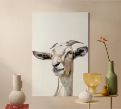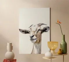 Questa incantevole fotografia raffigura un'adorabile capra, che cattura il suo fascino giocoso e la sua personalità unica. Perfetta per gli amanti delle capre e per gli appassionati di arredamento rustico, questa stampa di animali della fattoria aggiunge un tocco di decorazione ispirata alla natura a qualsiasi cameretta o stanza dei bambini.