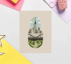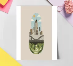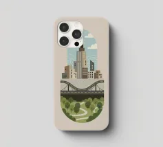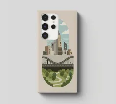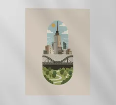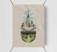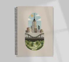 Questa illustrazione cattura la dualità della vita urbana moderna, fondendo senza soluzione di continuità il paesaggio urbano ad alta quota con la tranquillità della natura. Una vista stilizzata e compatta mostra imponenti grattacieli e infrastrutture di trasporto (strade, ponti) al di sopra di un vivace parco verde con sentieri serpeggianti e alberi rigogliosi. È una rappresentazione visiva della pianificazione urbana sostenibile e della necessaria coesistenza di sviluppo e spazi verdi in un unico ambiente coeso. Urbanistica, Paesaggio urbano, Architettura, Spazio verde, Sostenibilità, Parco, Ponte, Strade, Minimalista, Design piatto, Ecologico, Moderno, Natura