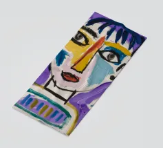 Questo dipinto presenta un carattere astratto semplicistico con linee minime e un mix di tonalità rosa, verdi e marroni. Lo sfondo è pulito e ordinato, per enfatizzare la semplicità del disegno.