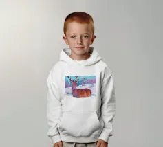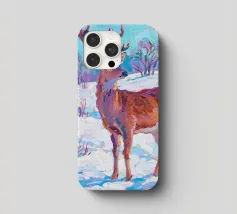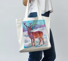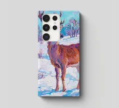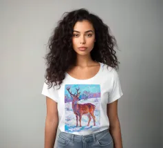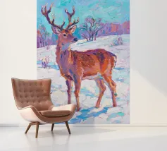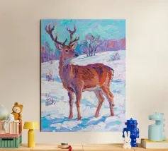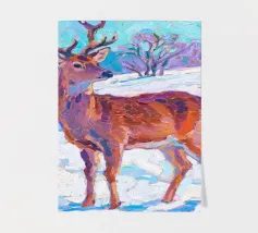 Cervo in piedi nella neve con pittura fauvismo stile arte