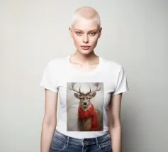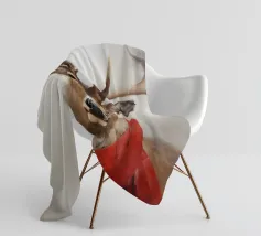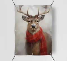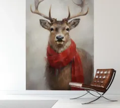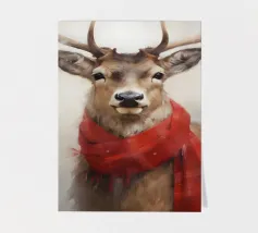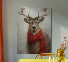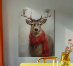 Un fiero cervo con una sciarpa rossa brillante si staglia su un morbido sfondo invernale. La combinazione di tecnica pittorica realistica e accenti festivi conferisce a questo quadro un'eleganza senza tempo. Ideale per le decorazioni natalizie, per gli amanti dell'arte invernale o come regalo elegante durante la stagione fredda.