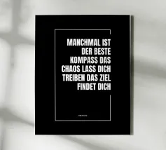 Questo poster ci ricorda che a volte il percorso migliore è quello non pianificato. "A volte la migliore bussola è il caos: lasciati andare alla deriva, la destinazione ti troverà". Ideale per le menti creative che vivono il momento e si lasciano guidare dall'imprevisto.