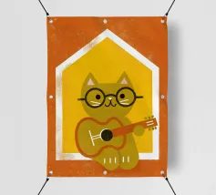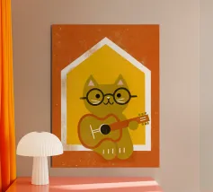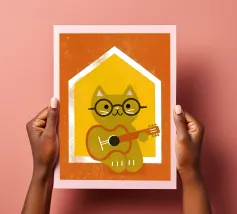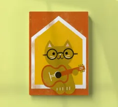 Gatto rockettaro! La collezione "Guitar Cat" è caratterizzata dal disegno di un gatto che suona la chitarra.