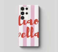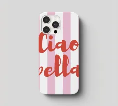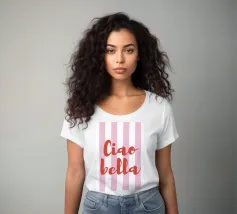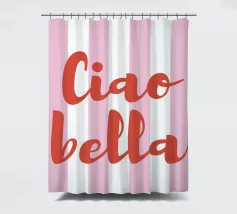 Decorazione con citazioni italiane, decorazione femminile per ambienti, estetica a righe rosa, stampa Ciao Bella, arte tipografica femminile, design di frasi romantiche
